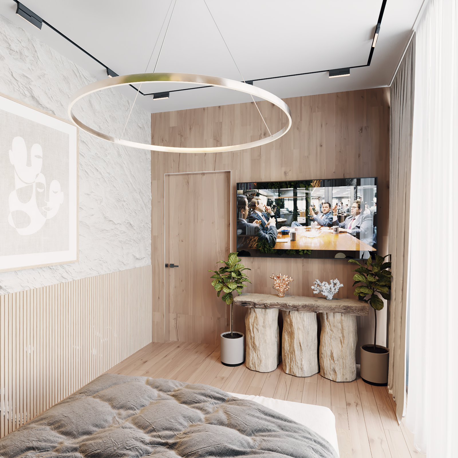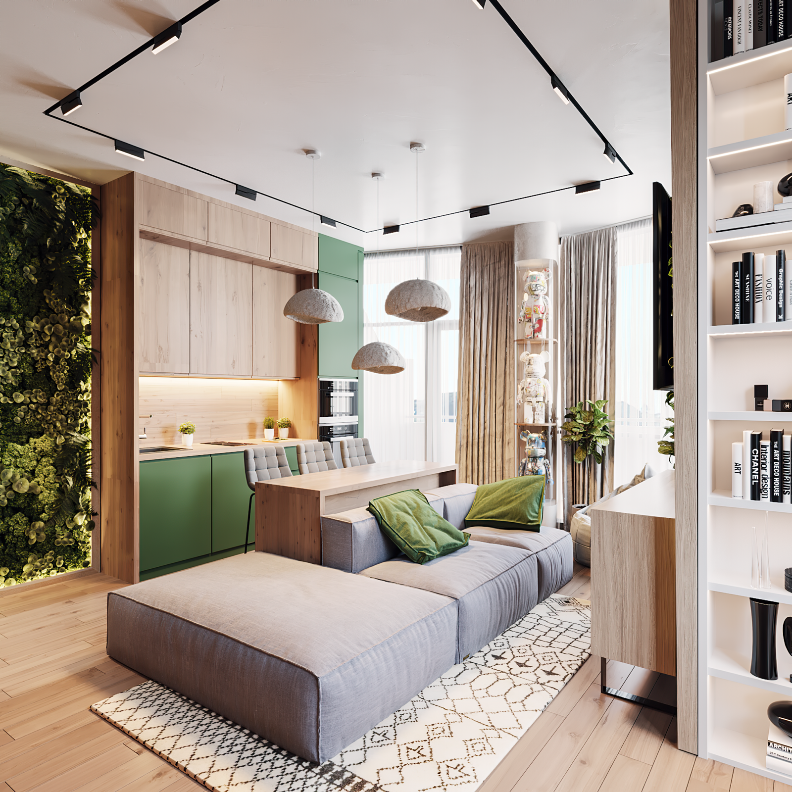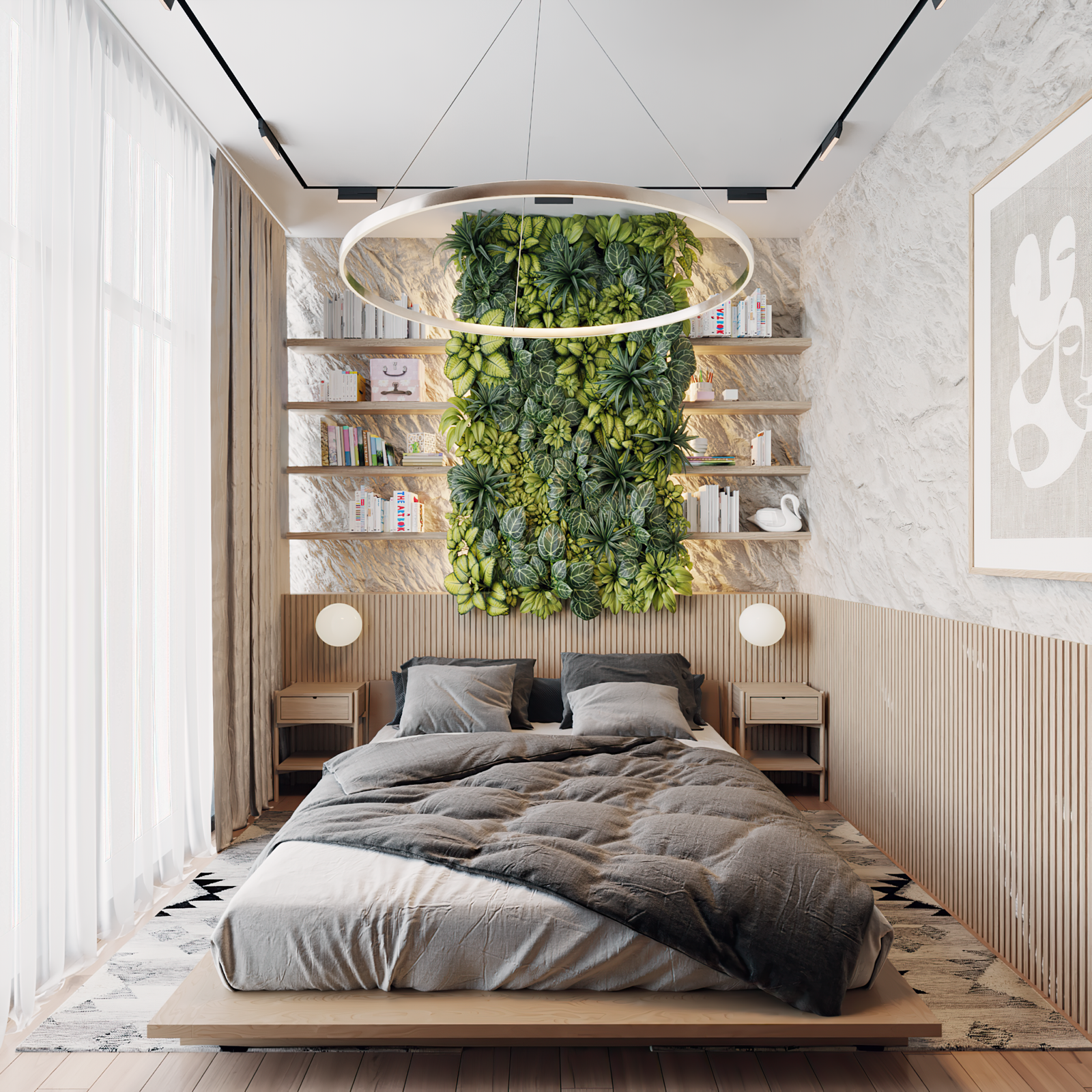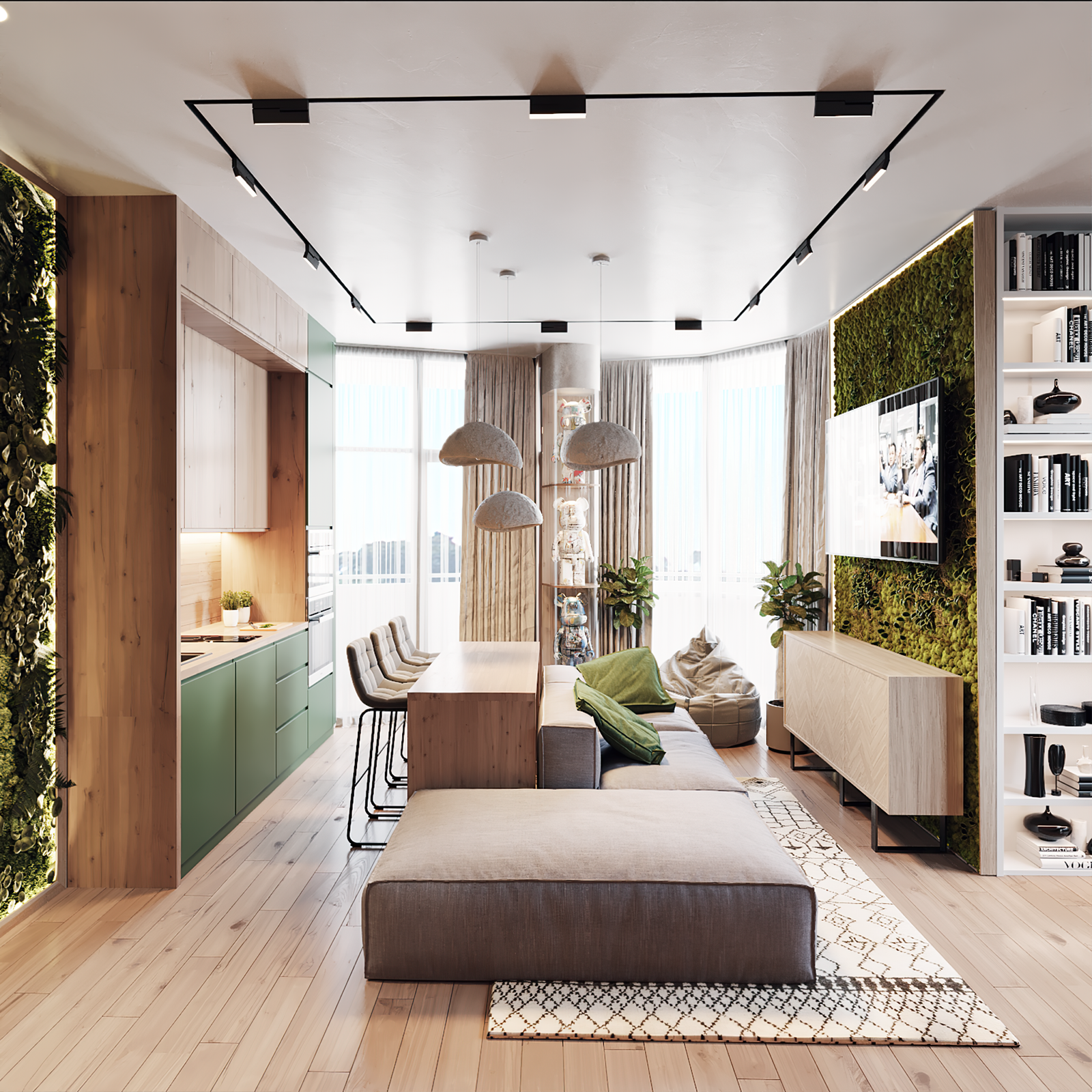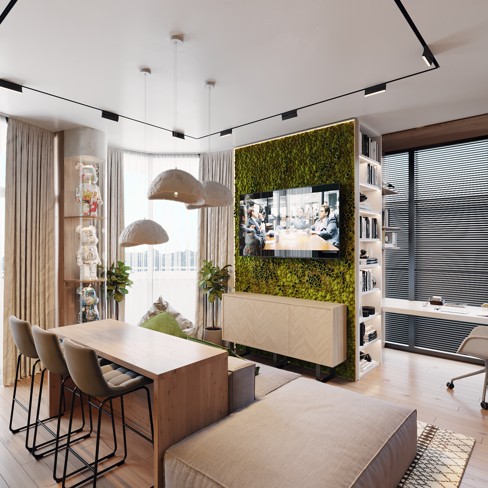 In Kolos Residence, we developed an eco-style interior design, combining natural materials, light neutral palettes, and vertical greenery integrated into the space, creating a sense of freshness and connection with nature.