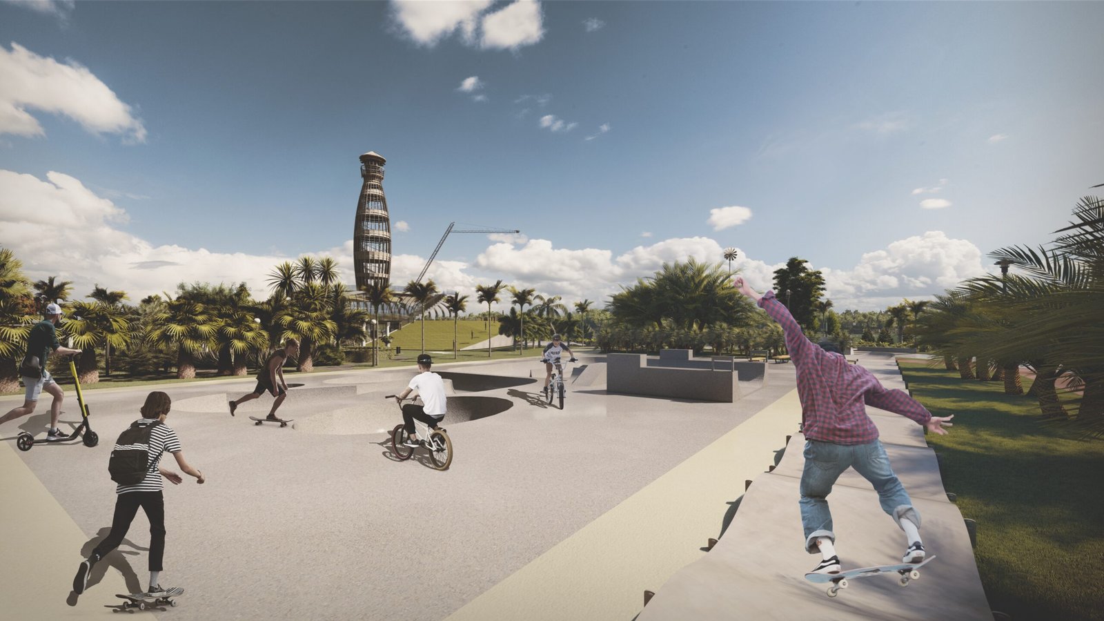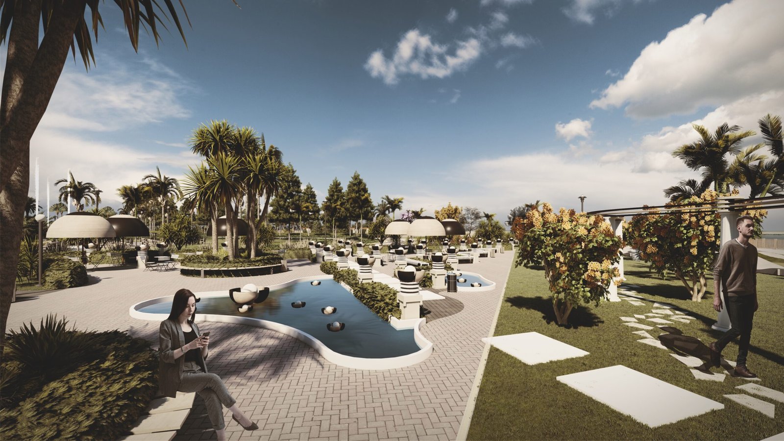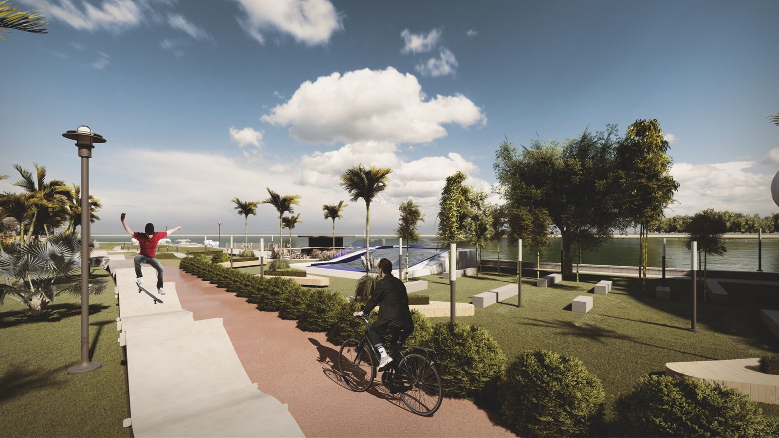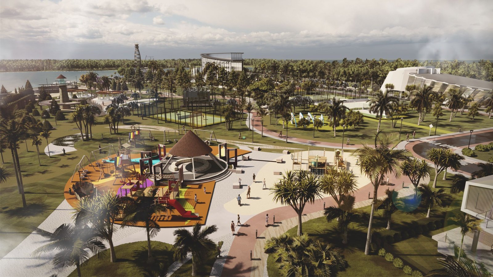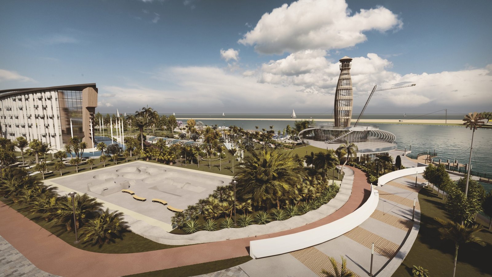 — public program planning: skate park, water sports zones, 5-star hotel, shopping center, co-working space, and leisure areas