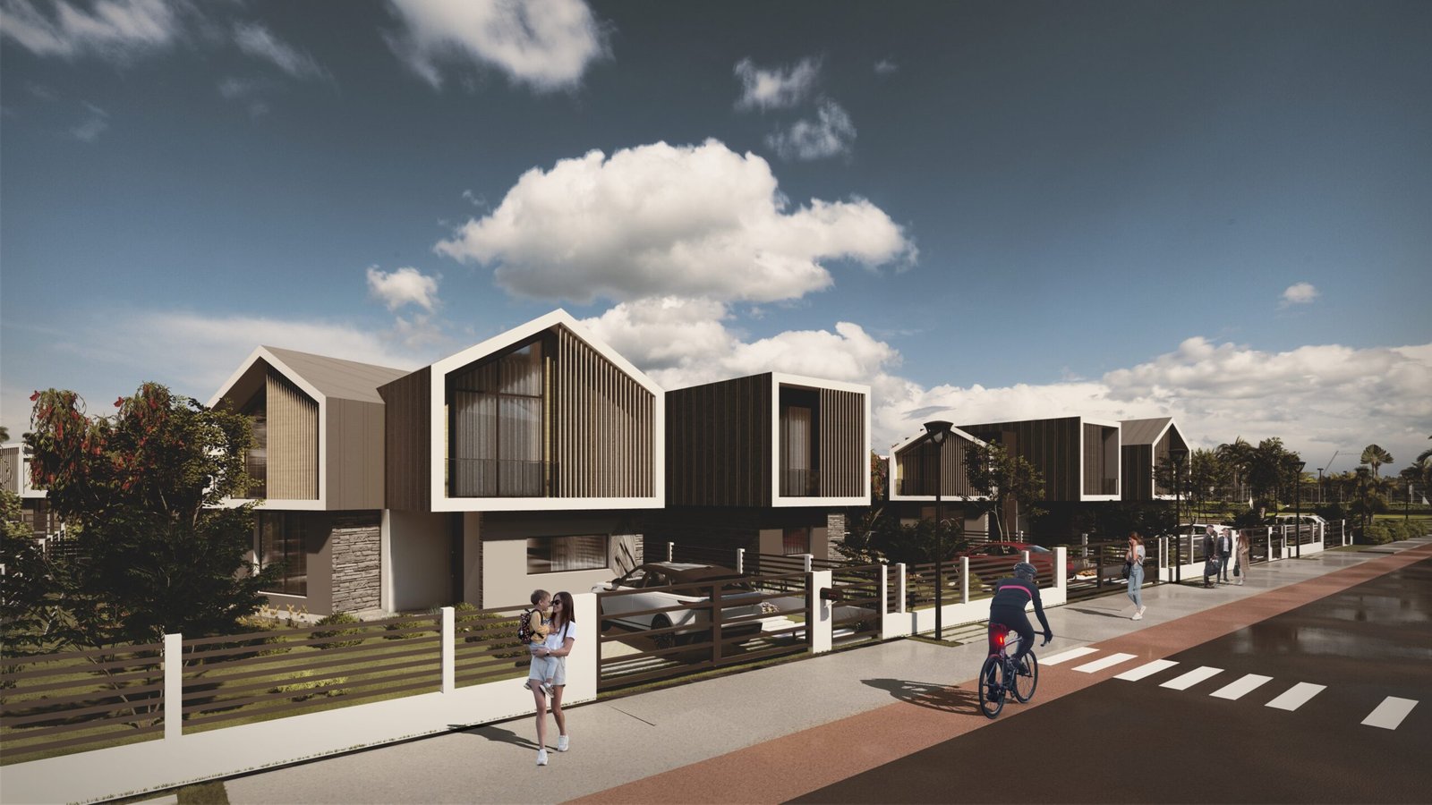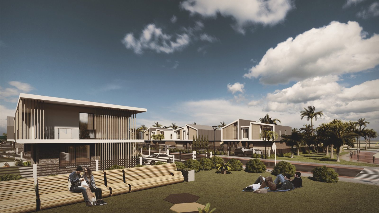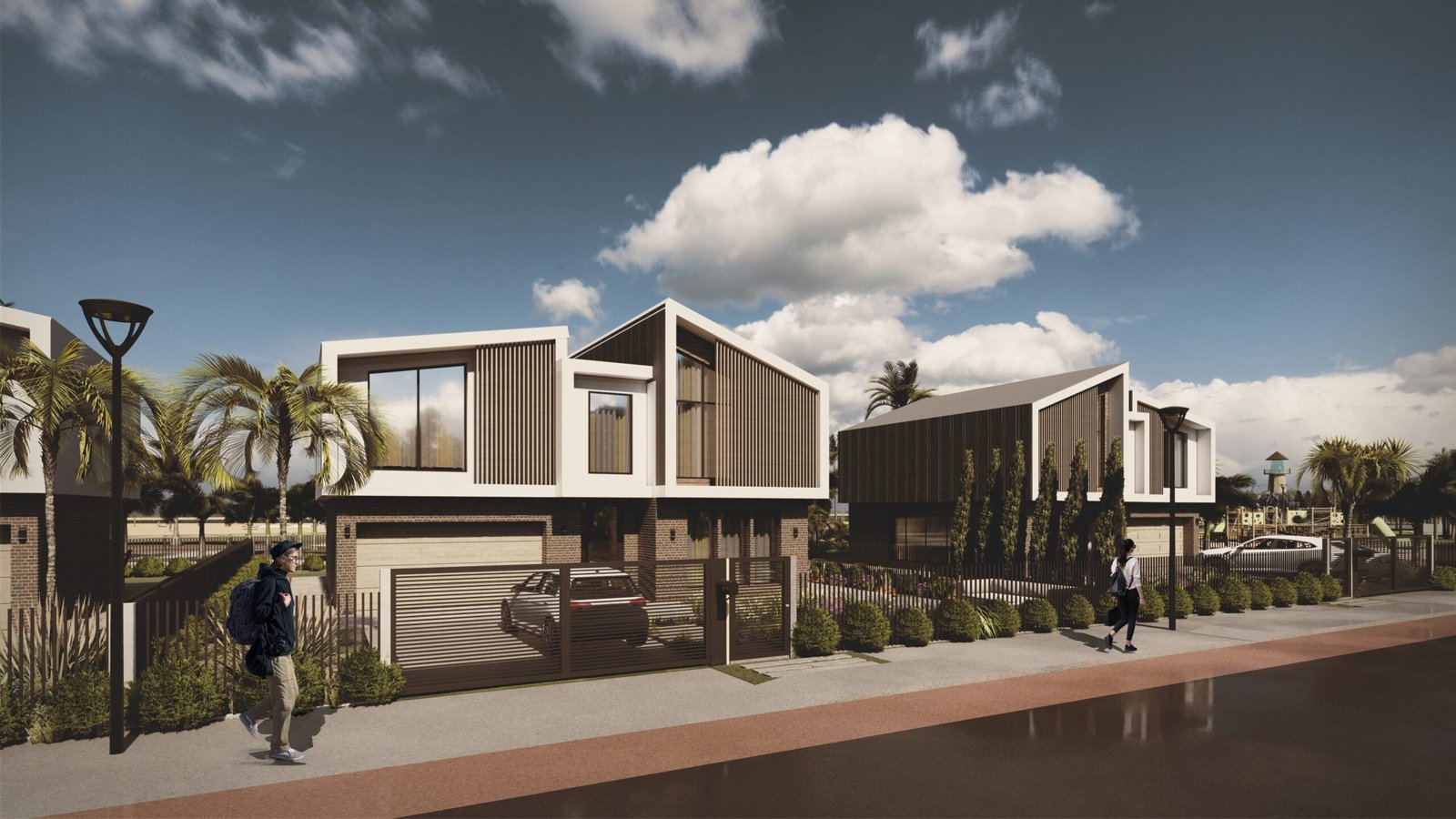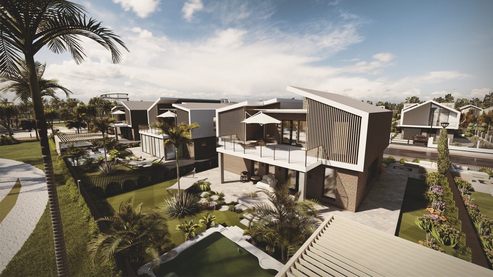 — residential typologies: townhouses, mid-range homes, and premium beachfront properties