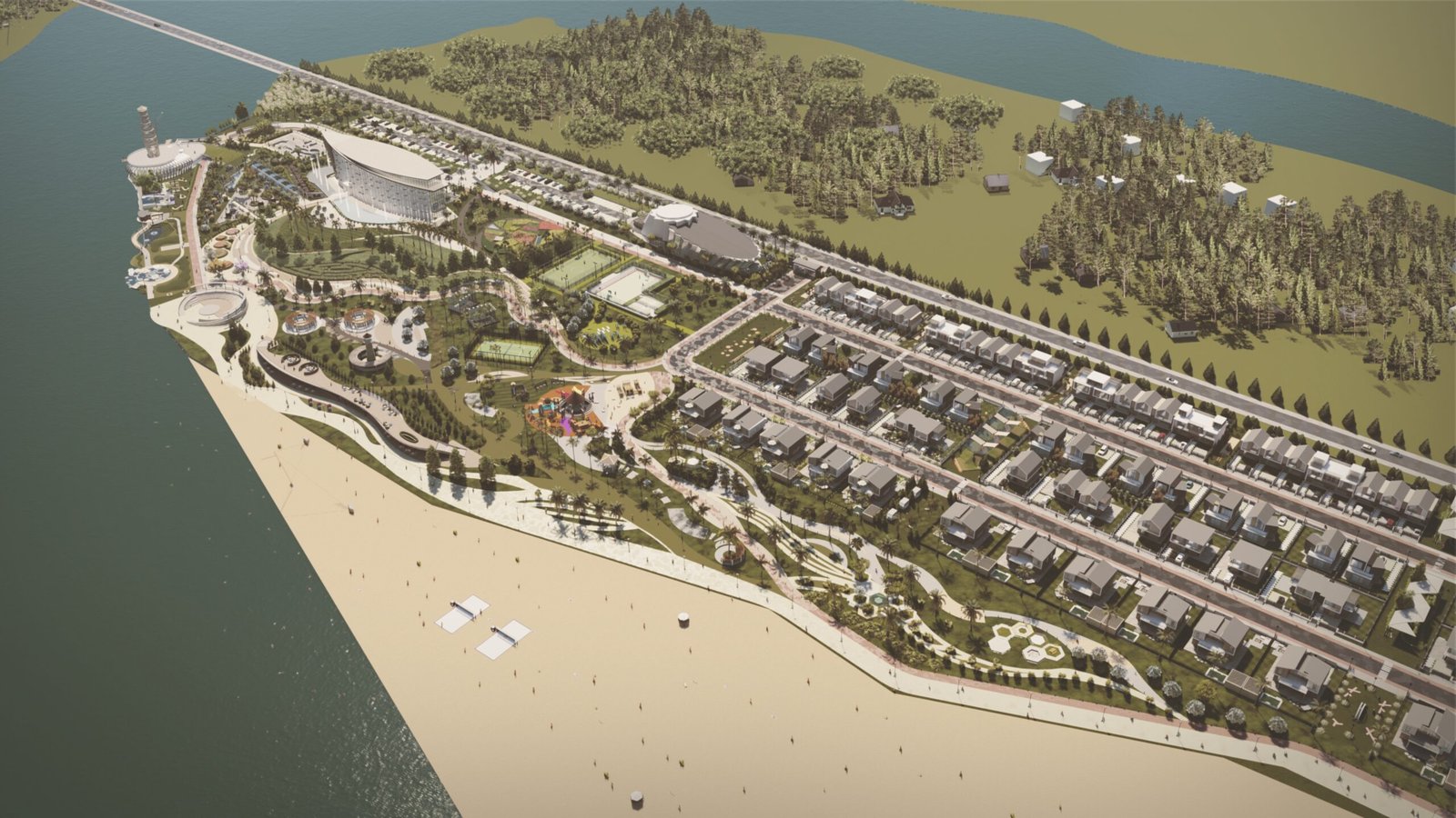 The project envisions an integrated environment combining private residential clusters with dynamic public and tourism-oriented infrastructure.